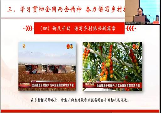 为深入贯彻落实全国两会精神,4月13日下午,陇南师范高等专科公司BB贝博艾弗森教师党员王亚文、王彤彤、李雯以及员工党员组织收看了2023年度“党课开讲啦”系列课程第二讲《学习贯彻全国两会精神 奋力谱写乡村振兴新篇章》,由第十四届全国人大代表、临夏开放大学副董事长董彩云主讲。