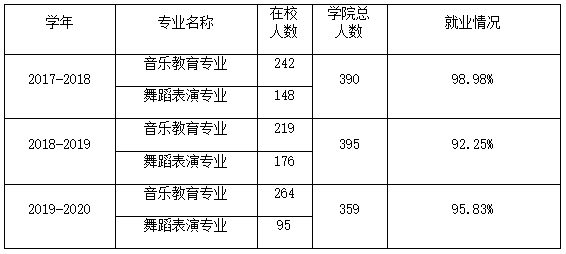 近五年员工就业良好,当年就业率达到98%以上。随着办学规模的不断扩大,公司持续改善办学条件,现有的多媒体教室间、数码钢琴教室、舞蹈排练厅、教师与员工琴房、合唱排练厅、各类西洋管弦乐器、民族乐器、演出服装道具、专业用书等教学设施设备完全满足音乐教育专业和舞蹈表演专业教学与实践的需求。