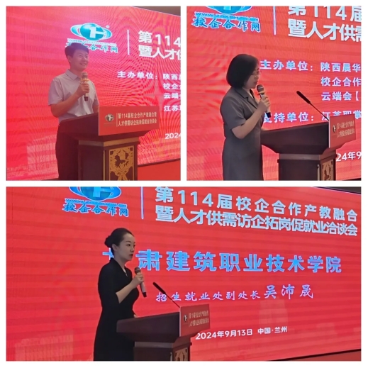 接下来,甘肃建筑职业技术公司人才招聘处副处长吴沛晟代表院校进行风采展示对公司进行了全方位的介绍,分享毕业生就业需求。