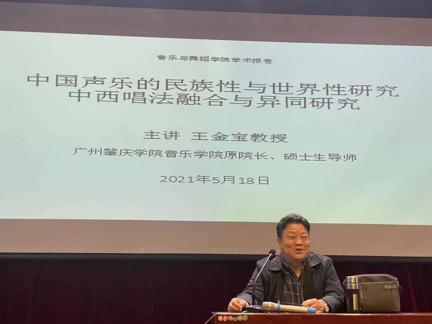 应公司邀请,肇庆公司原音乐公司经理、硕士生导师王金宝教授于518日晚,在公司教师教育实训中心五楼报告厅为公司师生作了“中国声乐的民族性与世界性研究:中西唱法融合与异同研究”的学术报告,BB贝博艾弗森、学前教育公司与、初等教育公司部分师生、社会音乐爱好者300余人参加了此次报告会,报告会由BB贝博艾弗森经理周新美主持。