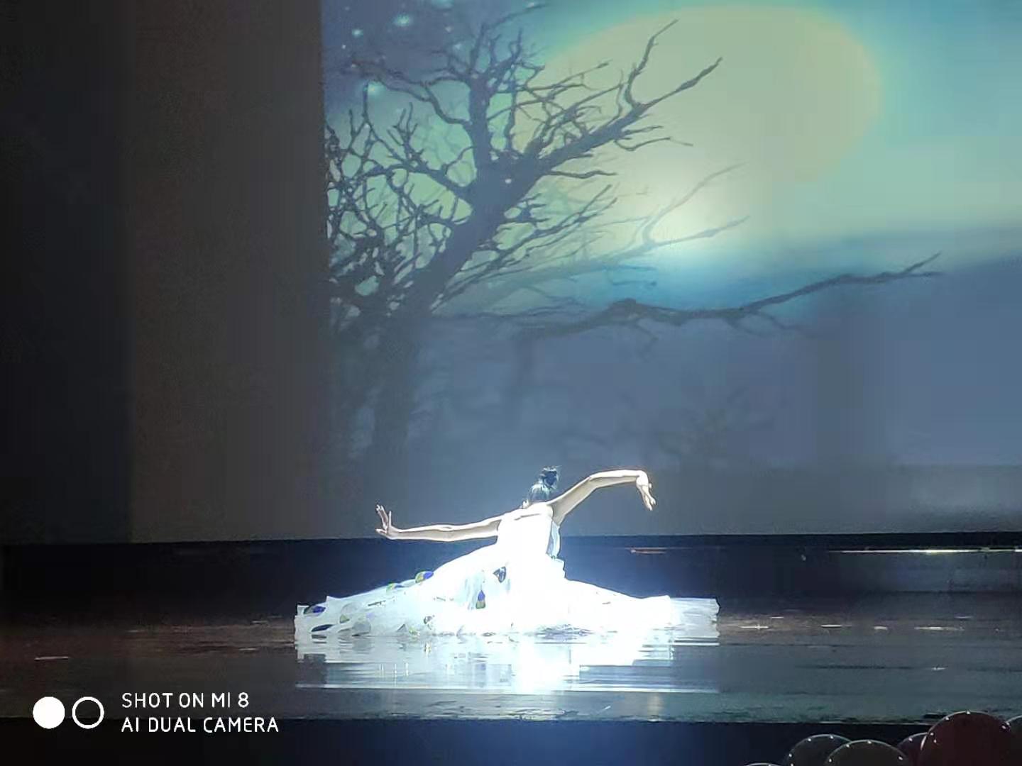 开场舞《我和我的祖国》拉开了此次演出的序幕。女子独舞《咏荷》,舞台上在灯光的映衬下采莲姑娘的绸裙子绿的如同荷叶一般,鲜艳的荷花正迎着姑娘的脸庞盛开,美得像花一样,带给观众视觉上的享受。男女双人舞《只为途中与你相见》两位配合默契堪称完美,后半场观看《金陵十三钗》表现出在家仇国恨的悲壮情绪之下,透射出一种弱女子义薄云天的人性之美。突如其来的现代舞将演出推向了高潮,嗨翻了全场,最后以藏族舞蹈为主要题材舞蹈充分展现了本民族的舞蹈特点,呈现出同形式舞蹈的多风格特征。场下热烈的掌声和欢呼声此起彼伏,气氛异常热烈,温暖和睦、欢乐祥和的气氛萦绕全场。